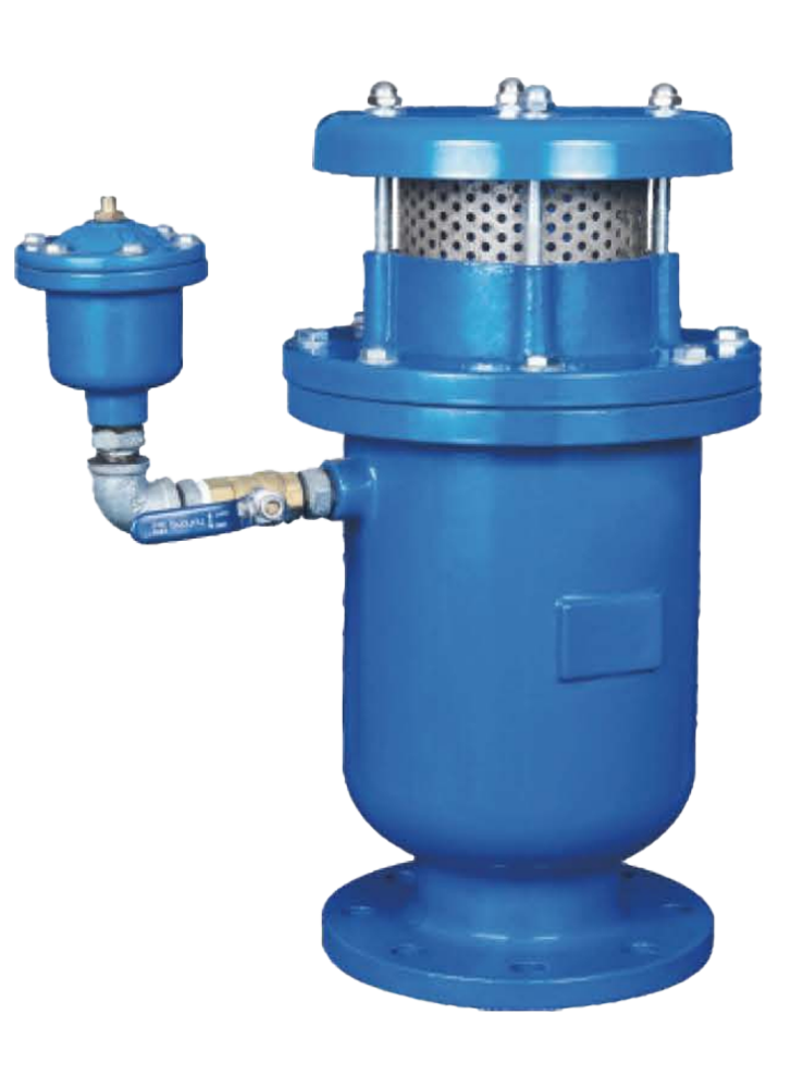 用于各種輸水管線中,具有大量進、排氣及微量連續排氣等功能。適用介質水、油品及海水等,適用溫度-10°C~80°C。 快速、大量排氣。排氣口采用通透式結構,當管道內開始充水時,能快速排出管中的氣體。